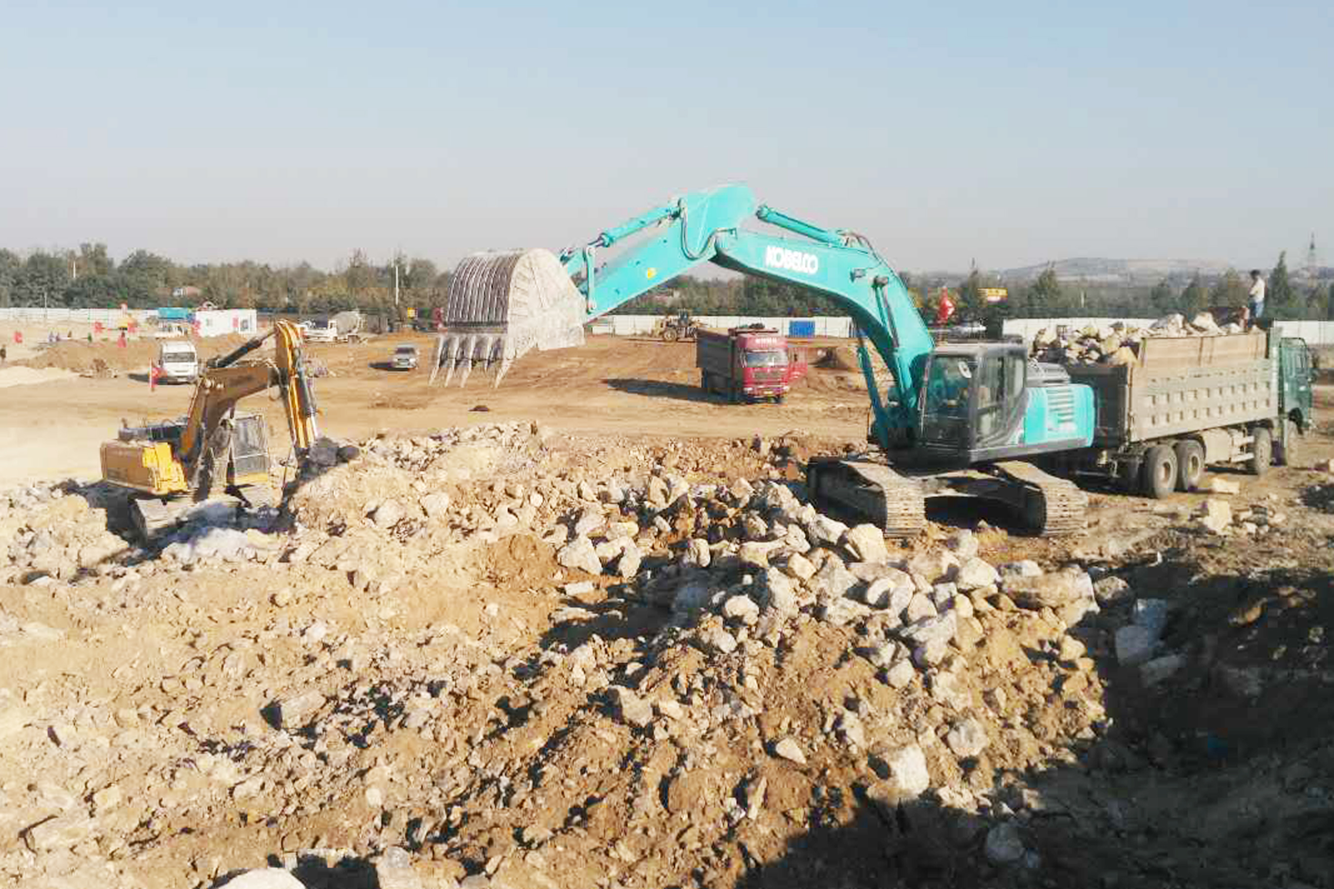 風(fēng)檣動(dòng),龜蛇靜,起宏圖!工程車川流不息、挖掘機(jī)揮鏟揚(yáng)土、強(qiáng)夯機(jī)轟隆作響,運(yùn)輸車疾駛而過,爆破聲震耳欲聾,漢唐電動(dòng)汽車千畝產(chǎn)業(yè)園區(qū)內(nèi)呈現(xiàn)出一派熱火朝天的景象。
