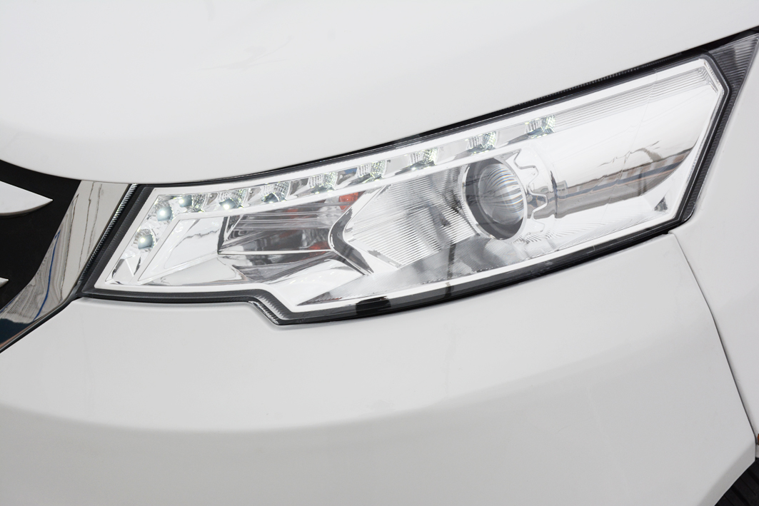 漢動A6大燈采用鷹眼式設(shè)計,遠近光一體式透鏡大燈將日間行車燈集成于一體,極大的提高夜間光照亮度,下方的高亮霧燈,更是保證了大霧天氣下的行駛安全性。