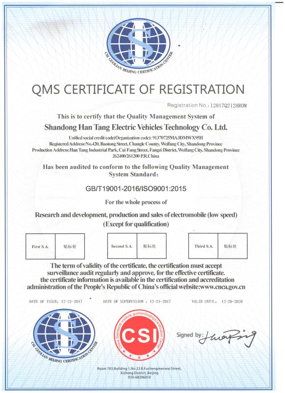 從緩慢發(fā)展到如今的合規(guī)驅(qū)動(dòng),中國(guó)低速電動(dòng)汽車行業(yè)正在經(jīng)歷一場(chǎng)全方位的升級(jí),ISO9001質(zhì)量管理體系認(rèn)證視為企業(yè)長(zhǎng)久穩(wěn)健發(fā)展的關(guān)鍵。通過ISO9001貫標(biāo)和質(zhì)量體系的認(rèn)證,意味漢唐已自上而下明確了組織架構(gòu)內(nèi)每一模塊、崗位的權(quán)責(zé),并制定了完善的制度、流程和管控體系。